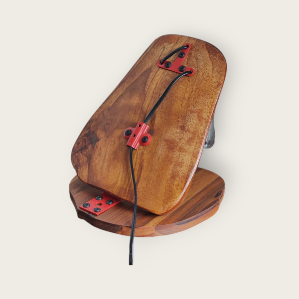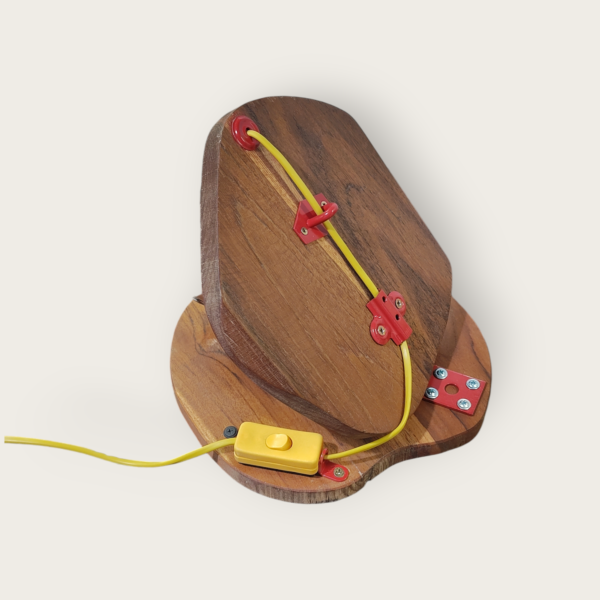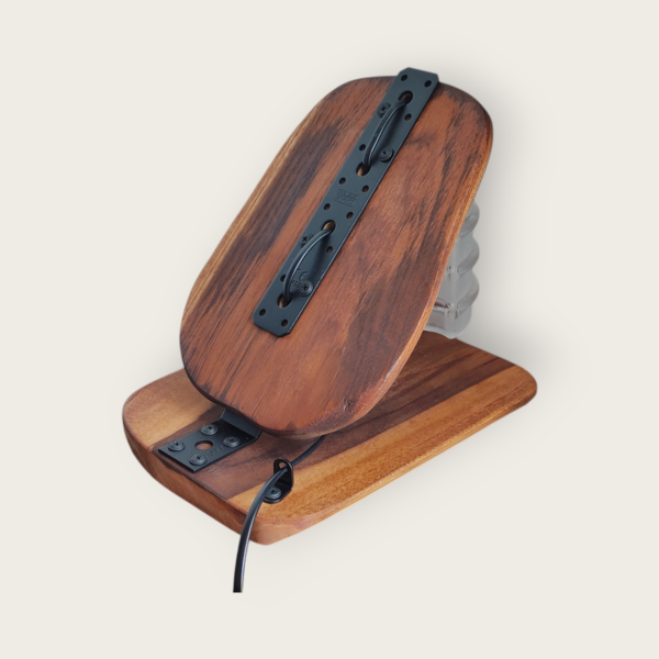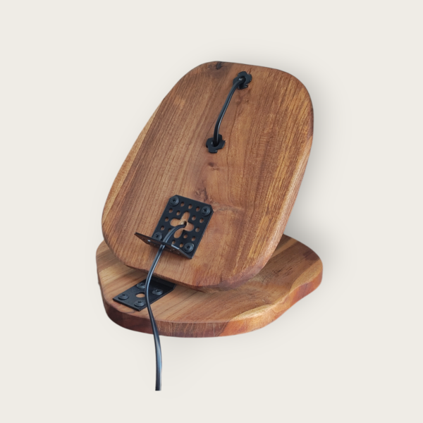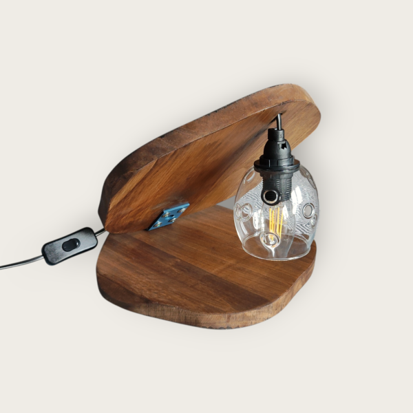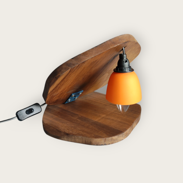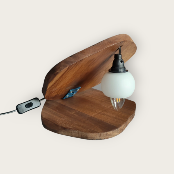 Jest jak skryta rozmowa przy ciepłym świetle – szept drewna, zgięcie zawiasu, miękki blask bijący spod łupiny. W samej lampce jest coś z muszli otwierającej się na światło, coś z książki otwartej w najważniejszym rozdziale. Drewno – surowe i czułe zarazem – staje się tu nie tylko materiałem, ale opowieścią o dotyku, czułości i prostocie, która nigdy nie przestaje być aktualna. Drewniane skrzydła otwierają się niczym intymna przestrzeń światła – tworząc horyzontalną scenografię dla żarówki, która staje się niemal aktorem. „Zuzanna” nie tyle świeci, co kontempluje swoje własne istnienie. To światło, które nie dominuje, a słucha.