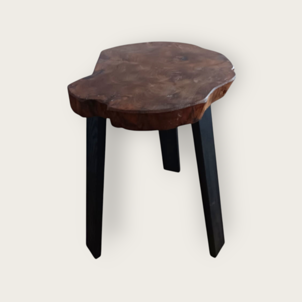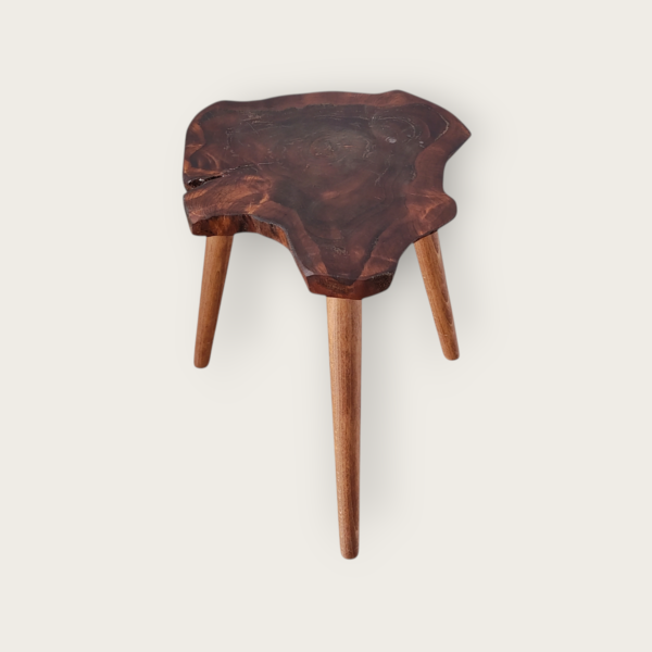 Jednym z najmilej wspominanych przeze mnie komplementów, który usłyszałem dawno temu, jeszcze w szkole średniej, było, że nie ulegam modom. Prawdę mówiąc, wówczas w ogóle o tym nie myślałem, aczkolwiek od tamtej chwili zacząłem przykładać do tego wagę, jako potencjalnego atutu. W tym jednak przypadku postanowiłem zrobić wyjątek i wpisać się w trend stolików kawowych, które powstają na bazie dużego plastra drewna. Oto więc i „Stefan”. Odnośnie do danych technicznych, bezcelowe jest ich odgórne wskazywanie, gdyż stolik może mieć dowolną konfigurację: wysokość i średnicę (a co za tym idzie, wagę), rodzaj drewna oraz kolor. Funkcja? Także dowolna. Mebel może na przykład stać się domem dla pokaźnego fikusa. Modele ze zdjęć mają po 50 cm wysokości, ok. 40 cm średnicy i są wykonane z plastra drewna tekowego, wykończonego olejem i woskiem. Nogi bukowe (okrągłe) i sosnowe (prostokątne, czarne).