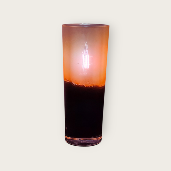 „Luna” to lampka zbudowana na kontrastach. Minimalistyczna forma, maksymalny klimat. Transparentny, szklany walec kryje w sobie solidną, betonową podstawę, która wydaje się chłodna, niemal przemysłowa. Jednak po zmroku, kiedy blask zaczyna sączyć się przez barwione wnętrze, wszystko się zmienia. To nie tylko źródło światła, ale mały rytuał wieczornego ukojenia. Pomarańczowy połysk na tle surowego spodu przypomina o ciepłych płomieniach ogniska, o lawie nad zimną skorupą ziemi, o domowym cieple ukrytym w skromnej formie.