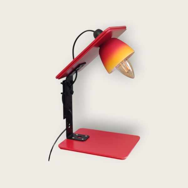 Ma zadziorny charakter – trochę jak styl gry tenisistki, której zawdzięcza imię od czasu wygranego Wimbledonu. Jej wyrazista forma opiera się na dwóch jaskrawoczerwonych płaszczyznach, połączonych czarną, techniczną konstrukcją, przywodzącą na myśl ramię robota lub fragment maszyny CNC. Nie udaje niczego – jest szczera w swojej formie, a dzięki temu zaskakująco estetyczna. Surowość spotyka tu domowy nastrój – jakby fragment warsztatu przeniesiono do salonu i kazano mu opowiadać wieczorne historie. To przedmiot dla osób, które lubią sprzęty z charakterem, funkcjonalne przedmioty z duszą i odrobiną industrialnego sznytu. To nie jest tylko lampka. To mikroinstalacja.