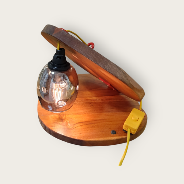 materiały: drewno bambusowe, elementy metalowe, klosz szklany/metalowy