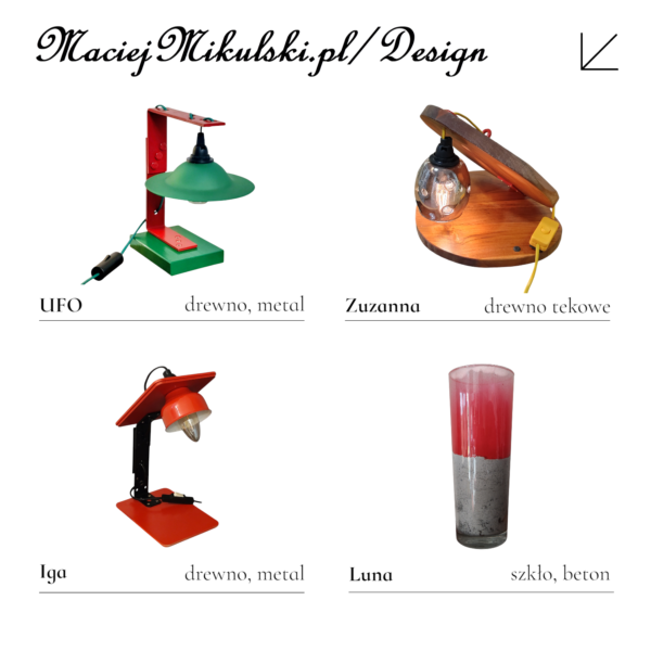 Dzień dobry! Dziękuję za zainteresowanie i poświęconą chwilę na wirtualną wizytę. Nazywam się Maciek i resztki swojego wolnego czasu spędzam w hobbystycznie zaaranżowanym warsztacie – miejscu, które urządziłem po swojemu i lubię nazywać „pracownią”, choć to raczej własny kąt do działania niż klasyczne atelier. Właśnie tam bawię się różnymi materiałami i elementami użytkowymi. Najczęściej powstają z tego lampy (choć nie tylko).